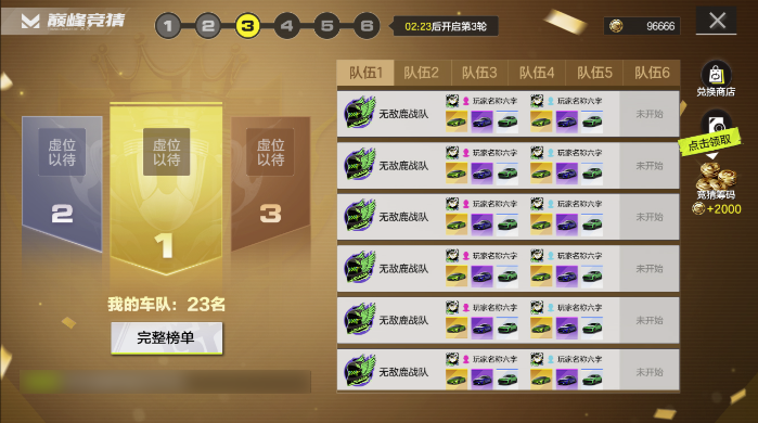决赛期间,车队里每支小队的胜负都将直接影响车队总积分,最终系统会根据6支队伍的总积分进行排名并发放奖励。