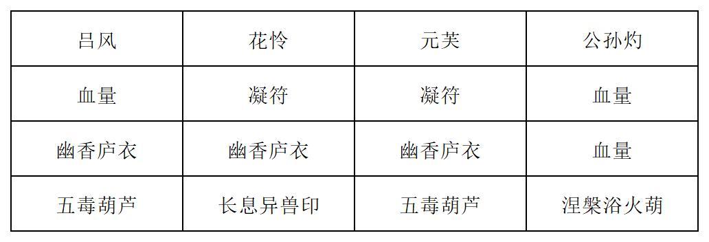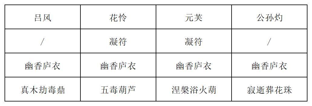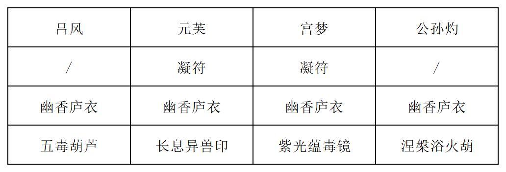 楚青青 元芙/花怜 宫梦队可以1/2回合复制宫梦的暗香咒,3、4回合复制元芙/花怜的玄天生长符,后面复制葬花决就行。