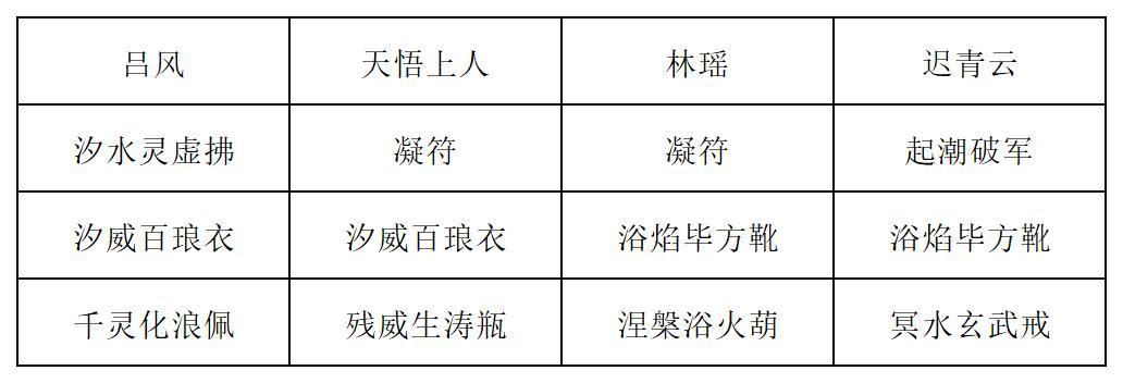 3、如果你没有冥水玄武戒,可以给天悟上人佩戴威能项链,其余三人首饰不变。