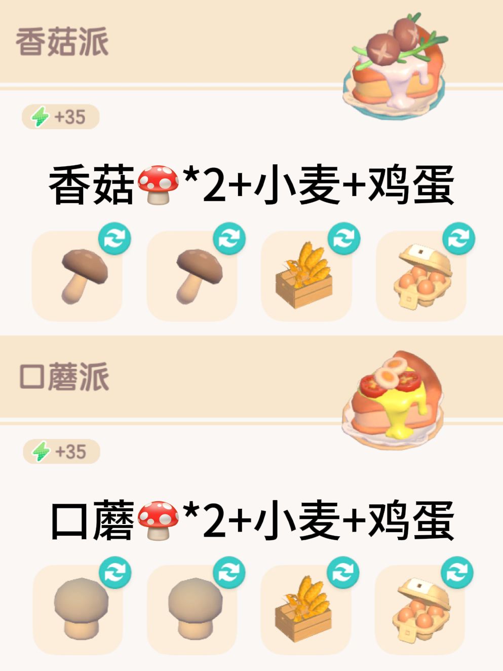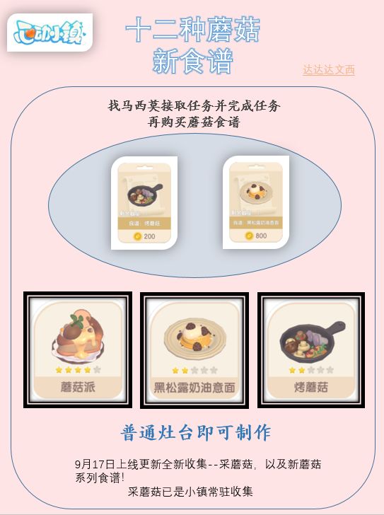 心动小镇9月17号更新- 蘑菇🍄系列食谱