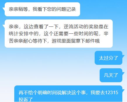 本人由于14号又向游戏客服反馈了该问题,要求明确整改时间