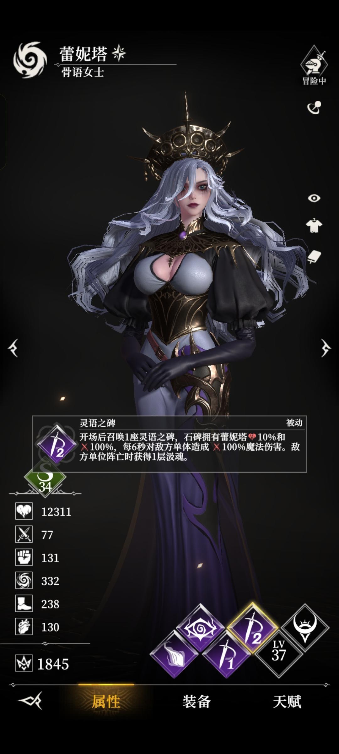 输出位:蕾妮塔-骨语女士(前期免费获得),AOE 魔伤 + 阵亡增伤机制,召唤墓碑加速被动叠加;