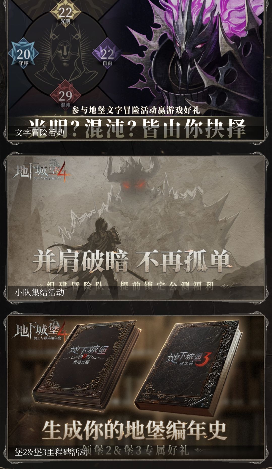 冒险小剧场:完成基于《地下城堡1》改编的 8 个文字冒险故事,可参与抽奖兑换道具;