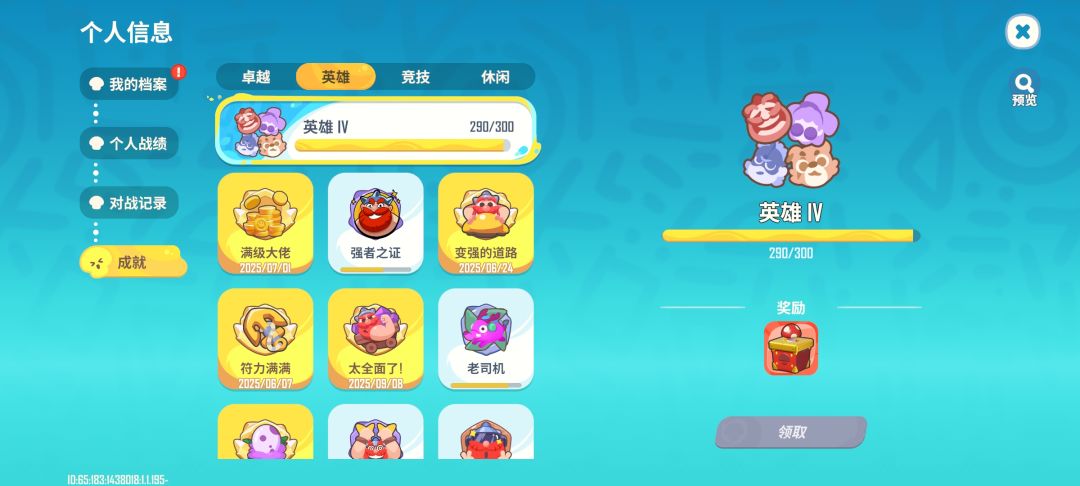 5英雄都拿到了,都满级,符文都有。平时用的也就可乐,其他角色没有适合宠物,打不动。