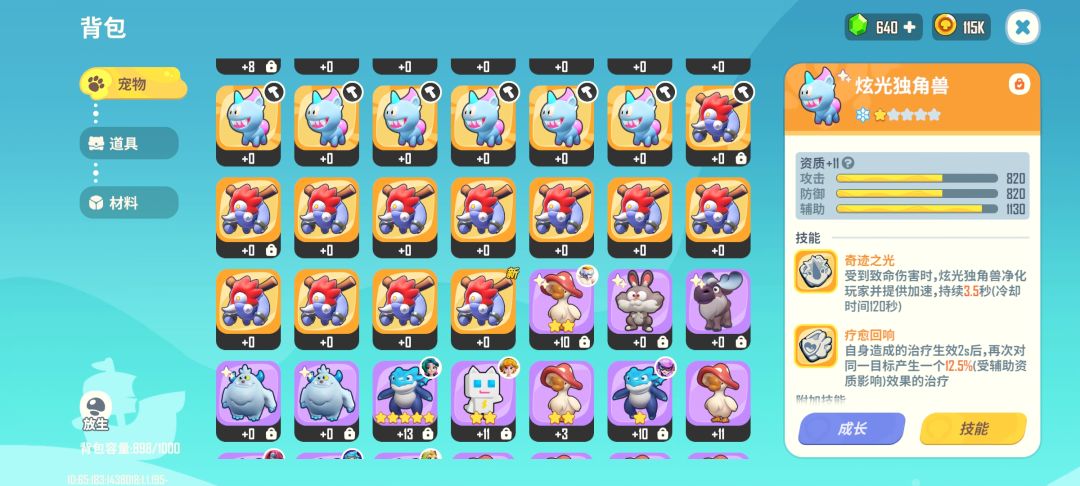 3,然后闪光宠,橙色1个,紫色5个,蓝绿14个。没有闪光龙,刚拿到闪光大鹅。期间宠物放生20个以内。养了的宠物只有一个13级的龙,配三个紫技能,其他没有技能。