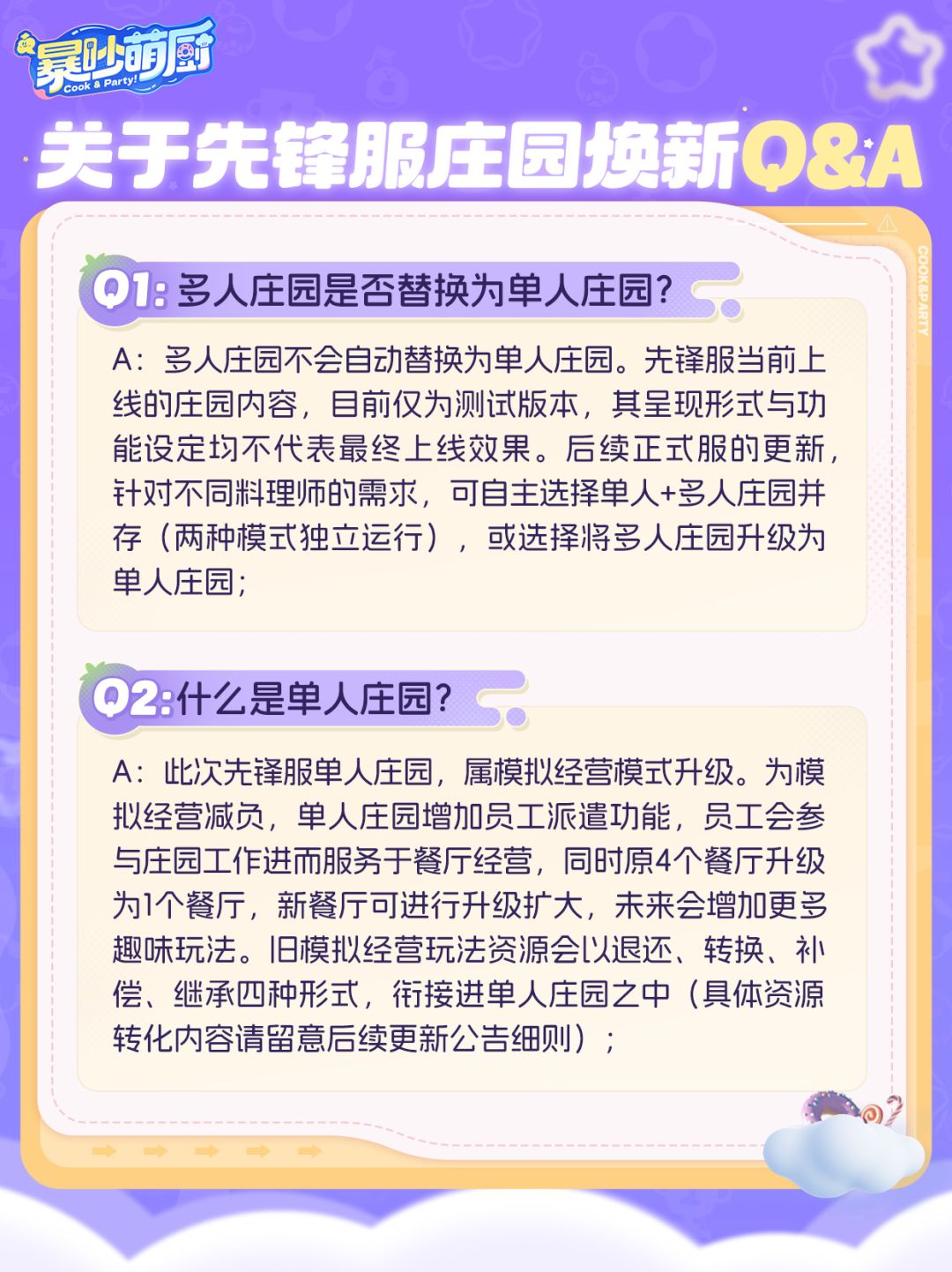 自先锋服开启庄园焕新测试以来,我们收到了许多料理师的提问与反馈。