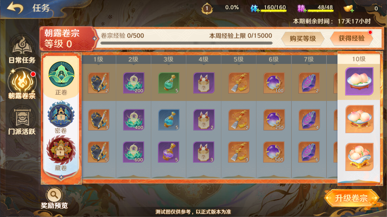 小提示: 满足开服天数的服务器,当前正在开放的朝露卷宗奖励无变化,直至下一期朝露卷宗开启,可刷新奖励。