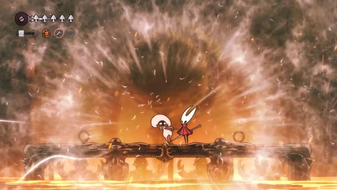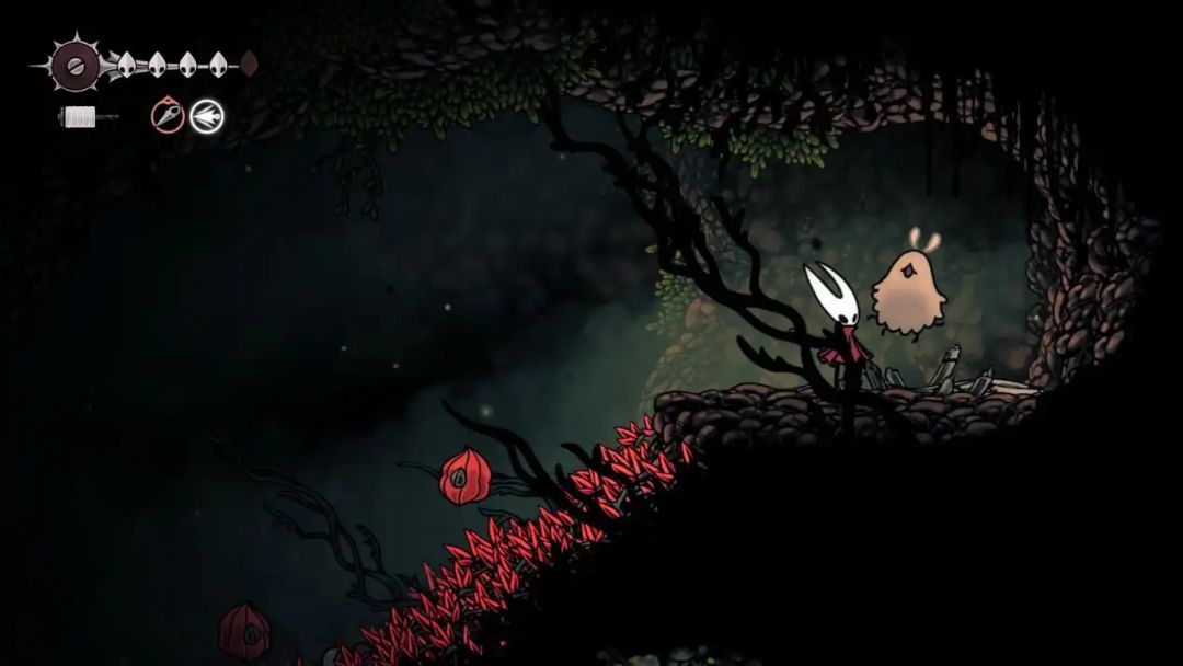 首先,对于深入体验过《空洞骑士》的玩家来说,《丝之歌》的初见体验既不像续作、也不像是在玩初代《空洞骑士》的内容扩展,而是颇有一种社区自制半成品mod的感觉。这种略显割裂的体验,很大程度上都要归功于本作特有的“无反馈”体验。因为相比起前作中所有敌人都会掉落金钱的传统设计,《丝之歌》加入工具系统后将货币变为稀有掉落物从而导致的“双货币”系统在一开始就割裂了玩家的清图体验。