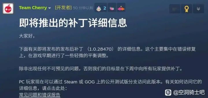 近日,知名单机游戏《空洞骑士》续作《丝之歌》发布
