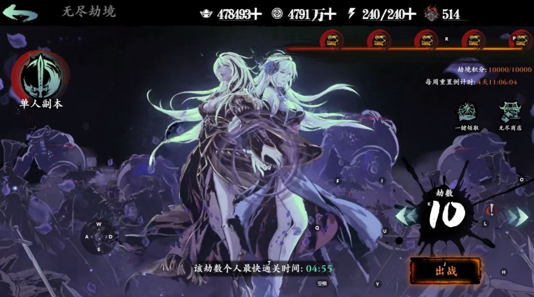 无尽劫境每周刷新一次奖励,积分打到10000即可拿满奖励。
