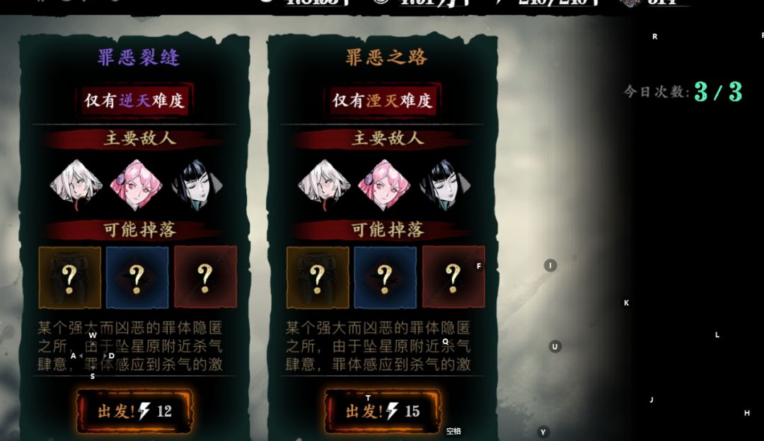 每天地图上关卡随机三个断罪、左上角罪恶裂缝固定每天三次次数,打断罪有点折磨自己所以如果你冰山之种(入局试炼阶段四送一套+6的)全部到到+7了的话可以不打,打断罪主要是断罪币能换蛇币同时提升冰山之种这一系列的刻印,打的话建议带上玄目凝天开局进去就放小黑屋然后开始输出。