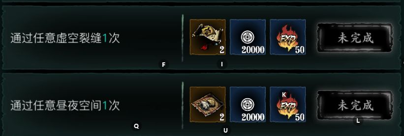 3. 回收任意装备10件、进行一次烹饪、完成任意品质卷宗5次、通关任意昼夜空间、虚空裂缝1次