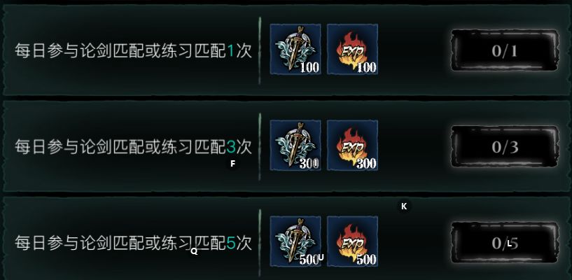 4. 参加论剑或练习匹配五次,这里不想打论剑掉分的话可以挑人多一点的时间点穿上内鬼戒指和自动扣血罪业词条的断罪装备去练习匹配自杀送完五把即可。