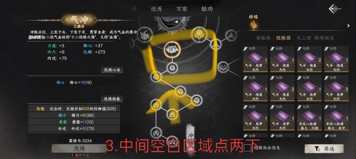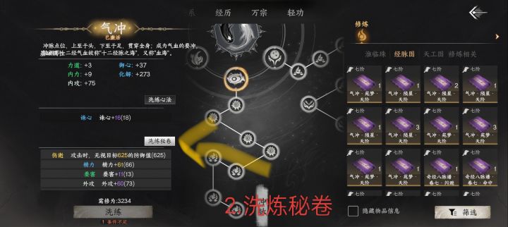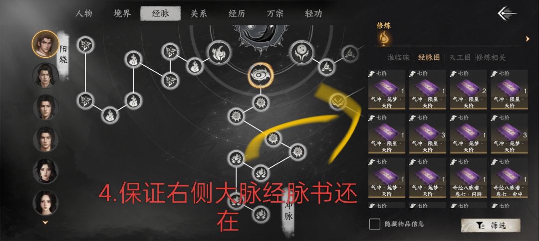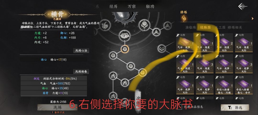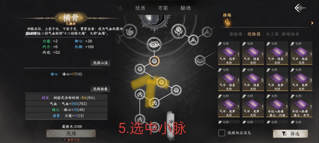 3.经脉书有很多种,咱们只要[大脉名]•[类别]•天阶 这一种,举例:气冲•陨星•天阶