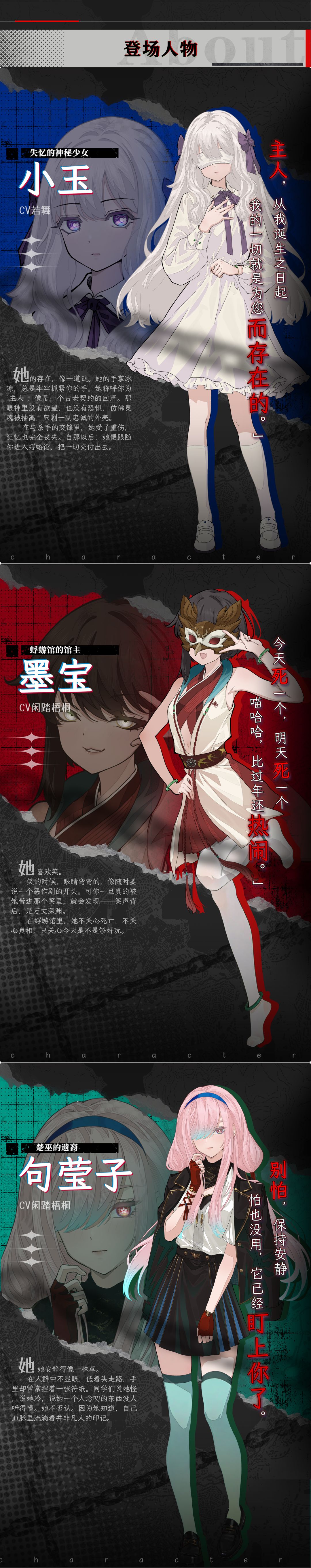 我们一直认为,做游戏和写剧本,真诚是必杀技。为了给喜欢悬疑AVG的你带来最绝妙的故事体验,我们经历了相当长时间的筹备。从策划案写下的第一笔到完工时敲下的最后一行代码,时间成为灌溉作品的甘露。