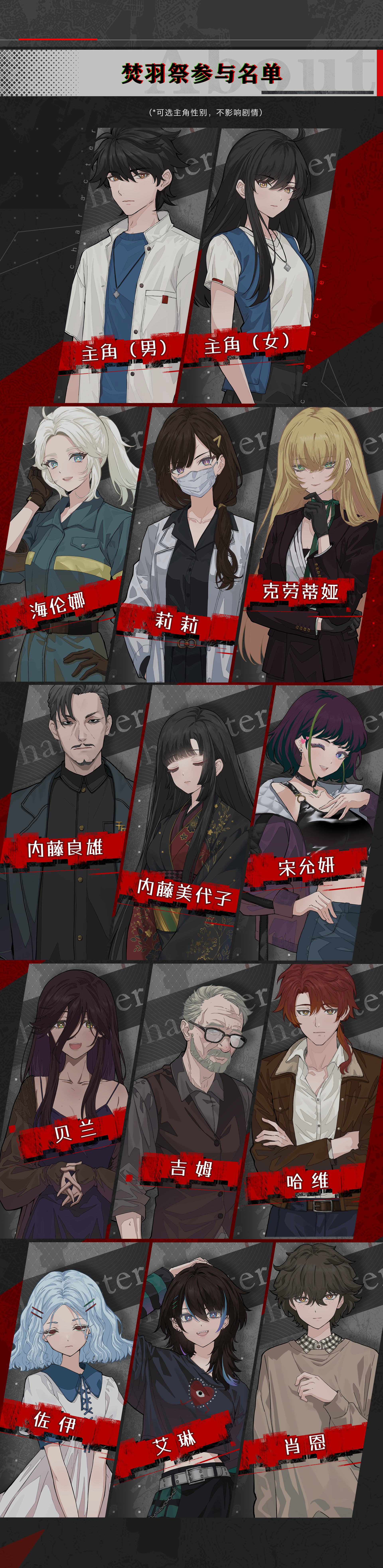 你(玩家)将化身被神秘邀请至蜉蝣馆的十四名参与者之一,在传承千年的焚羽祭祀中直面连锁死亡与人心角力,探索仪式背后的千年秘闻,拨开层层迷雾,直至真相浮现。