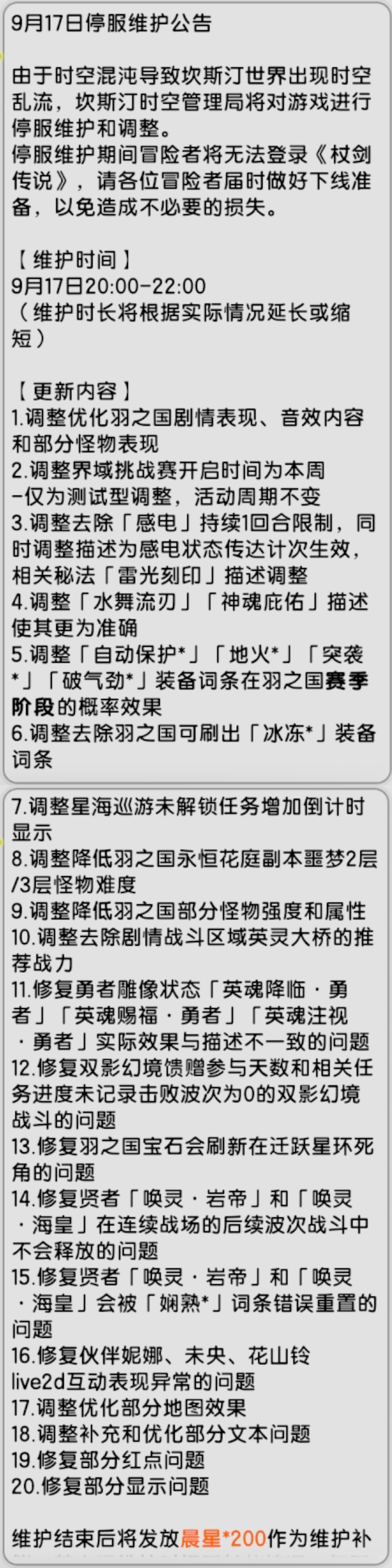 【杖剑传说】先遣服9月17日更新公告