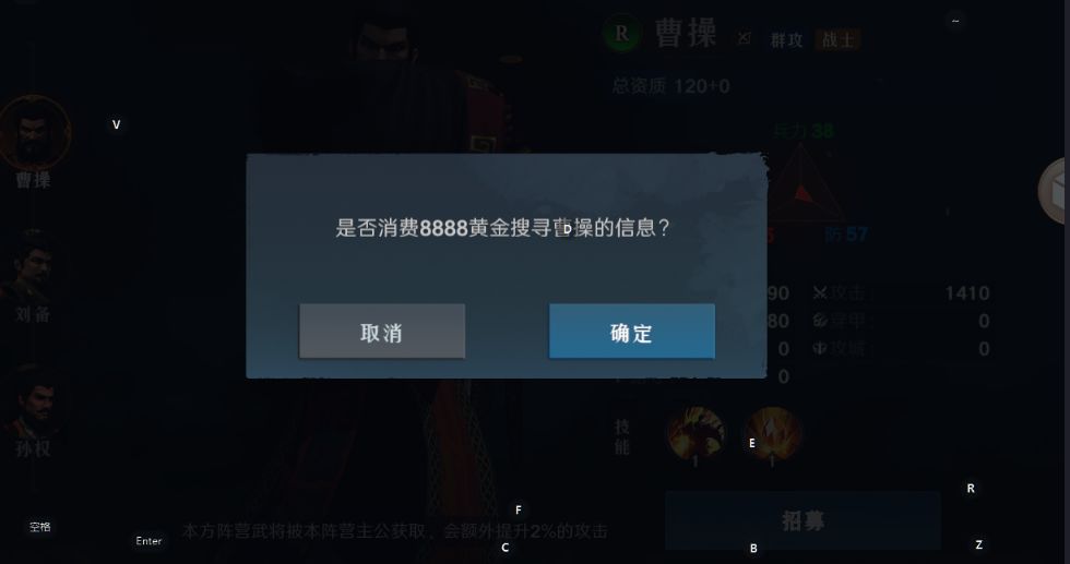 l 点击首领选项后,可以在选择招募一个首领,点击招募后消耗对应的黄金获取首领的坐标信息,坐标信息发送到邮箱的系统信息中。其中本阵营首领消耗5000黄金,其他阵营的首领消耗8888黄金。