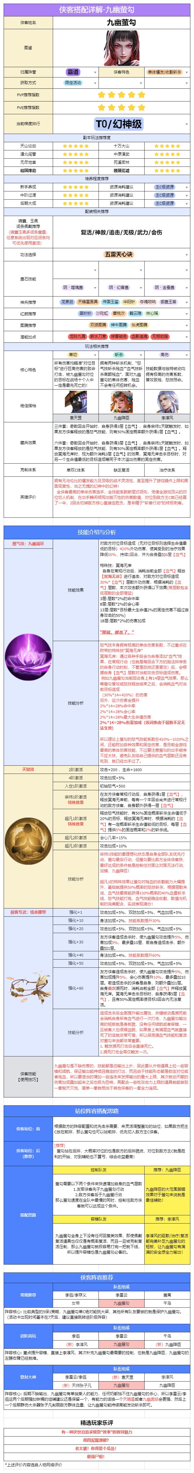 为了少侠们更好的了解这位侠客,我们整理了一份「九幽·萤勾」使用攻略,也欢迎有更好建议的少侠在评论区与大家一起交流!