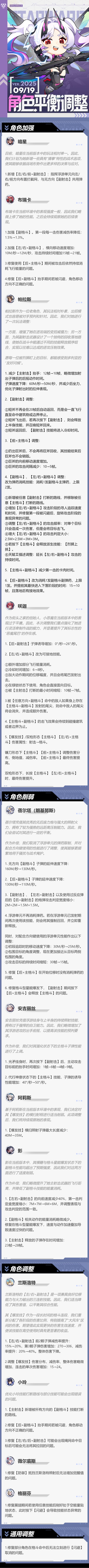 各位团长好,为了让团长们有更好的游戏体验,我们决定在9月19日游戏更新后对部分角色进行平衡调整,改动如下: