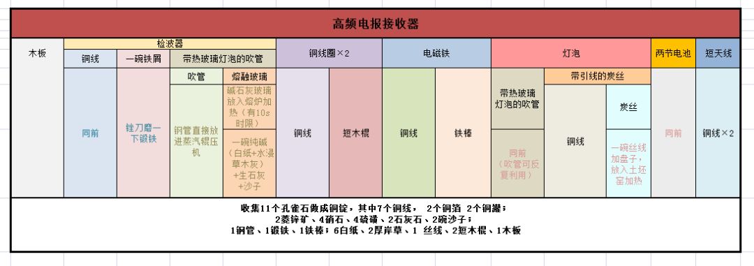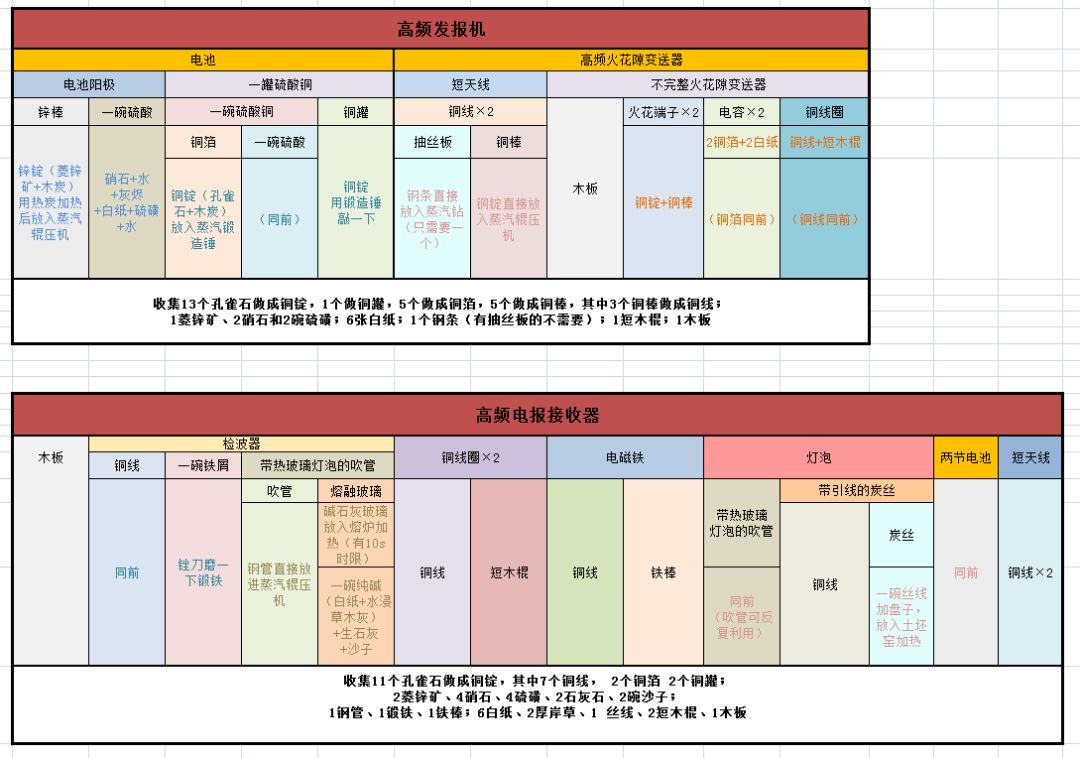基本是按照物品的安置顺序排列的,有些默认比较基础的就没写。抽丝板感觉肝到蒸汽的基本都做过了,但还是放上了