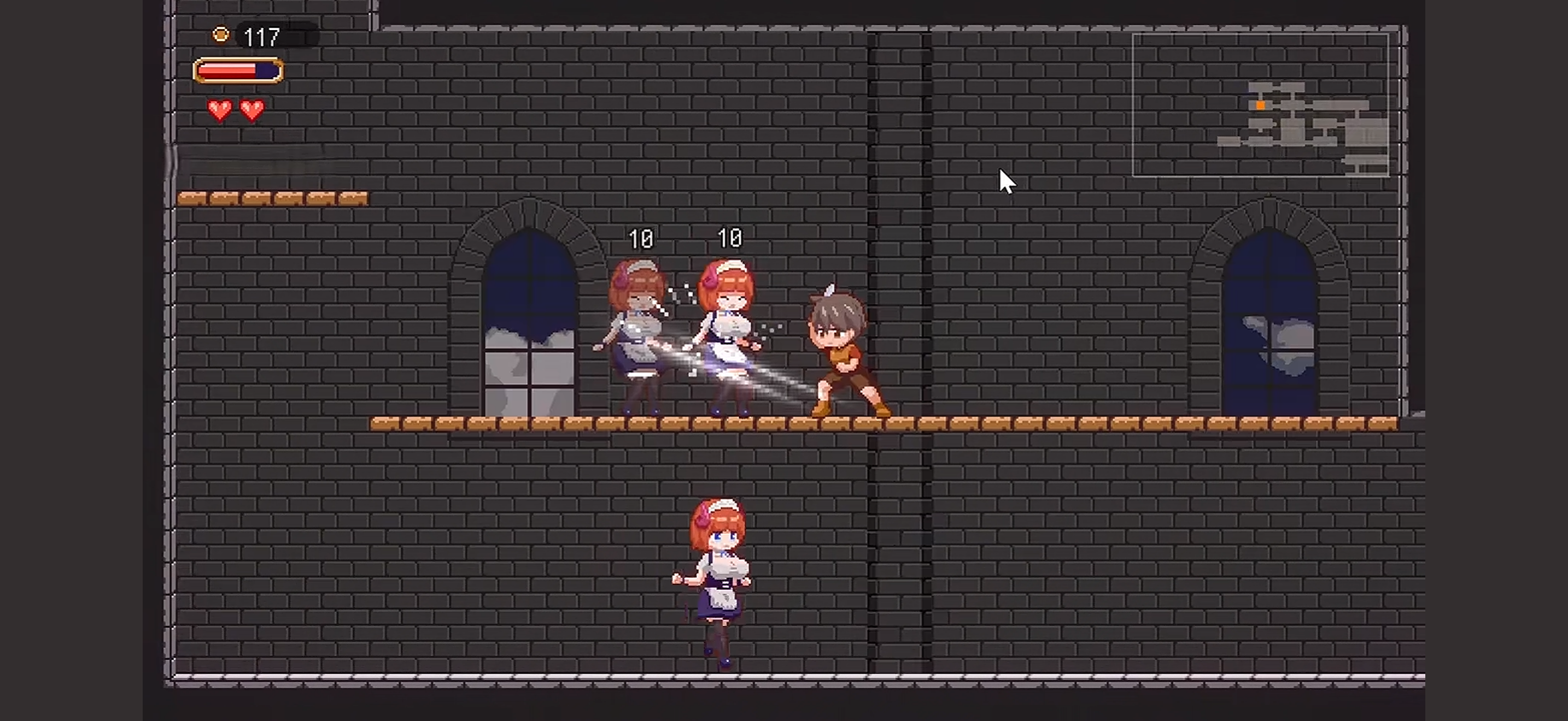 • 游戏玩法:游戏为2D探索动作类型,类似类银河战士恶魔城游戏。玩家通过“跳跃”“回避”“攻击”等简单操作,在地图各处寻找宝物,获得新武器与装备后,前往探索下一个地区。游戏中敌人种类超过20种,敌人会使用“诱惑技”与“H拘束技”来袭击主人公,包含29种不同的拘束动画。此外,游戏还设有双重结局,若玩家能集齐五片无法忘怀之花,并在觉醒之处敲响,便能解锁真结局,带着猫娘克洛回到真实世界。