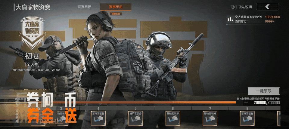 参与物资赛获得积分,精兵券、柯恩币、装扮券好礼等你来领取!