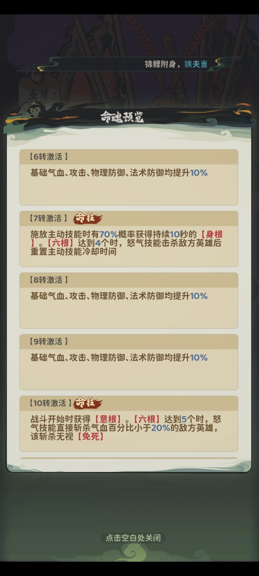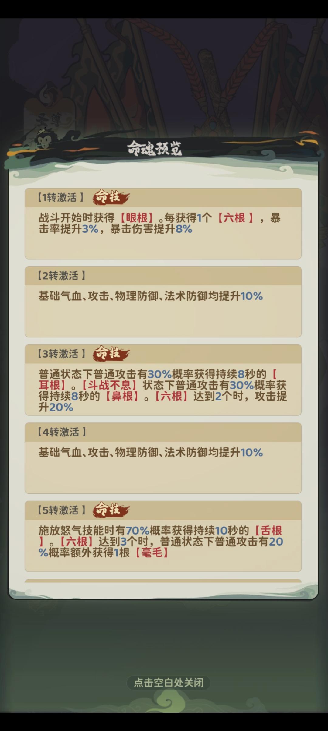 7转一般,增加主动技能大概率获取六根,怒气击杀刷新主动