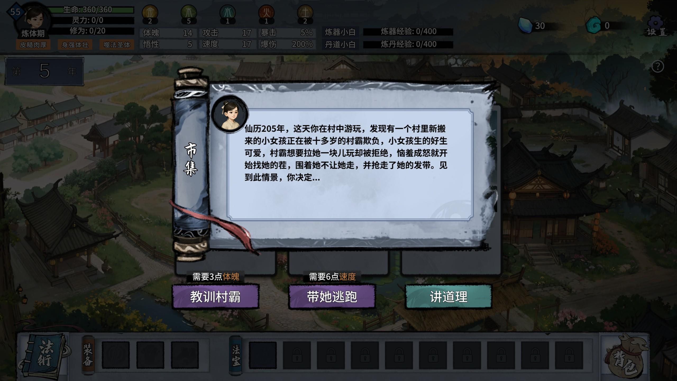 游戏中的奇遇事件设计也非常巧妙。有直接增加属性的一次性事件,也有埋下长线伏笔的事件,还有各种长线支线任务,让你在修仙之余也能体验到丰富的故事内容。