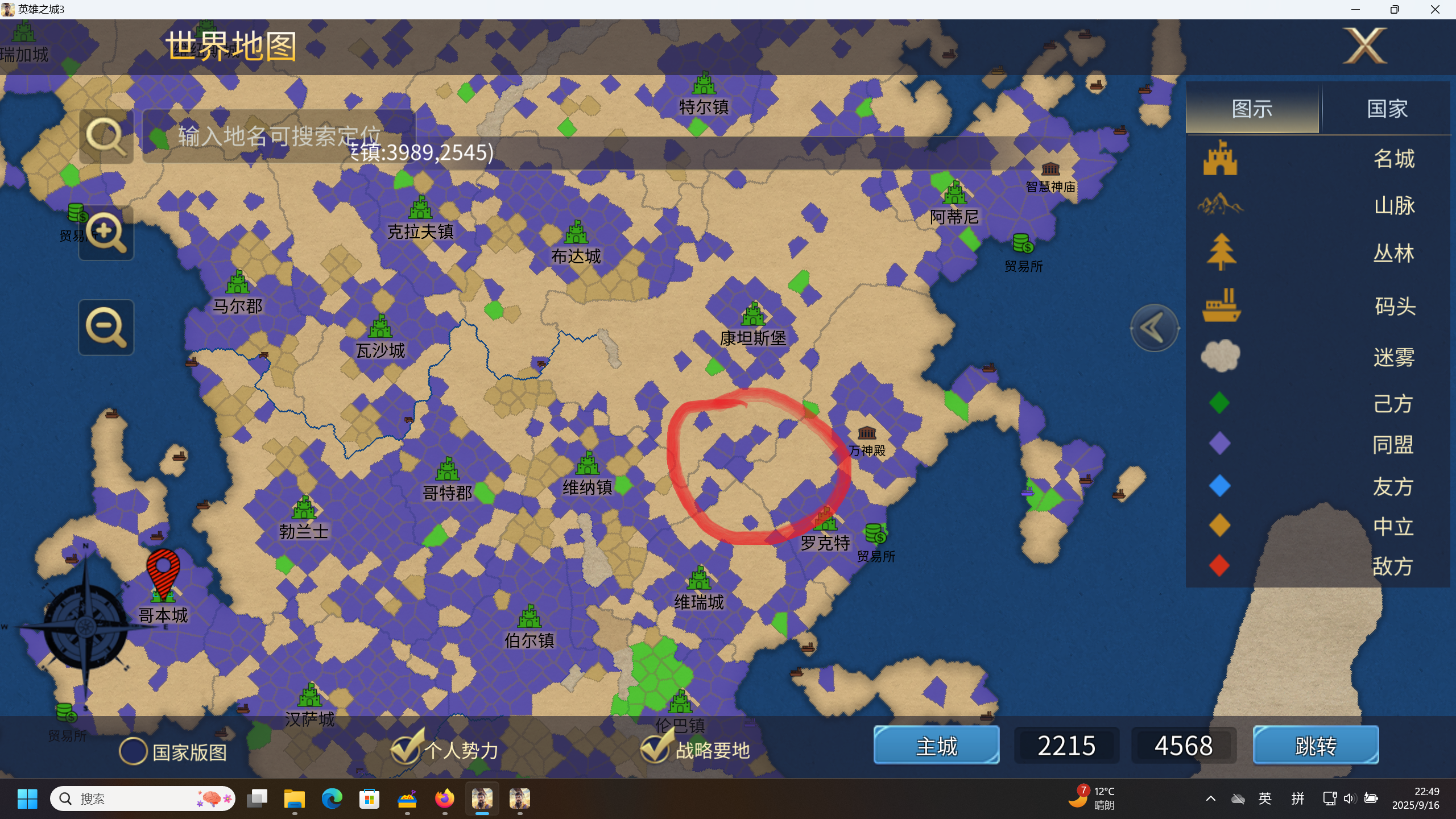 中立城哥本城和核心城汉萨城相邻,在此建设军屯,可覆盖大陆西部。