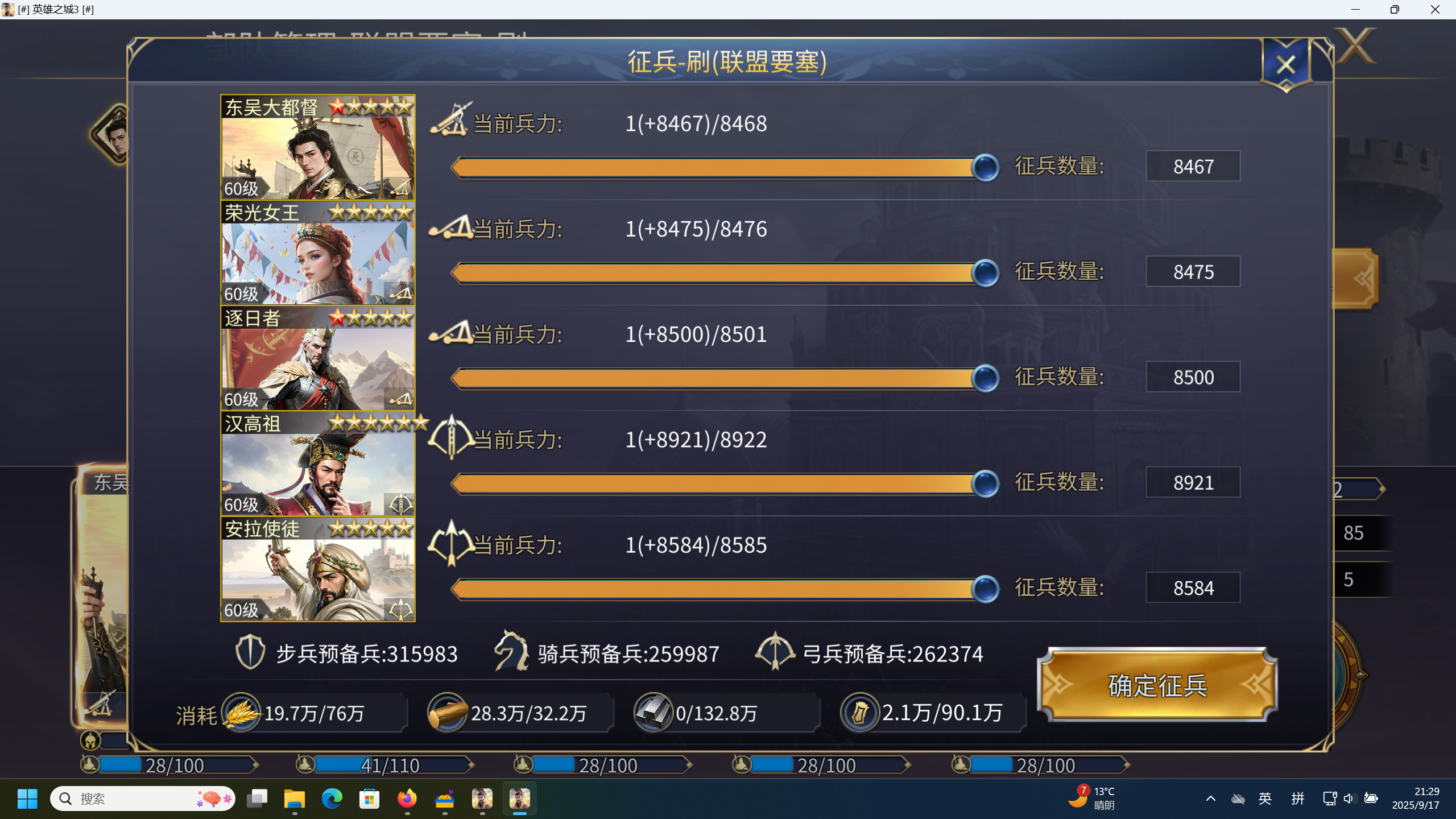 需要注意的是,要塞中征兵,需要额外消耗你的联盟贡献值,贡献值可通过运输资源以及捐献军令获得。