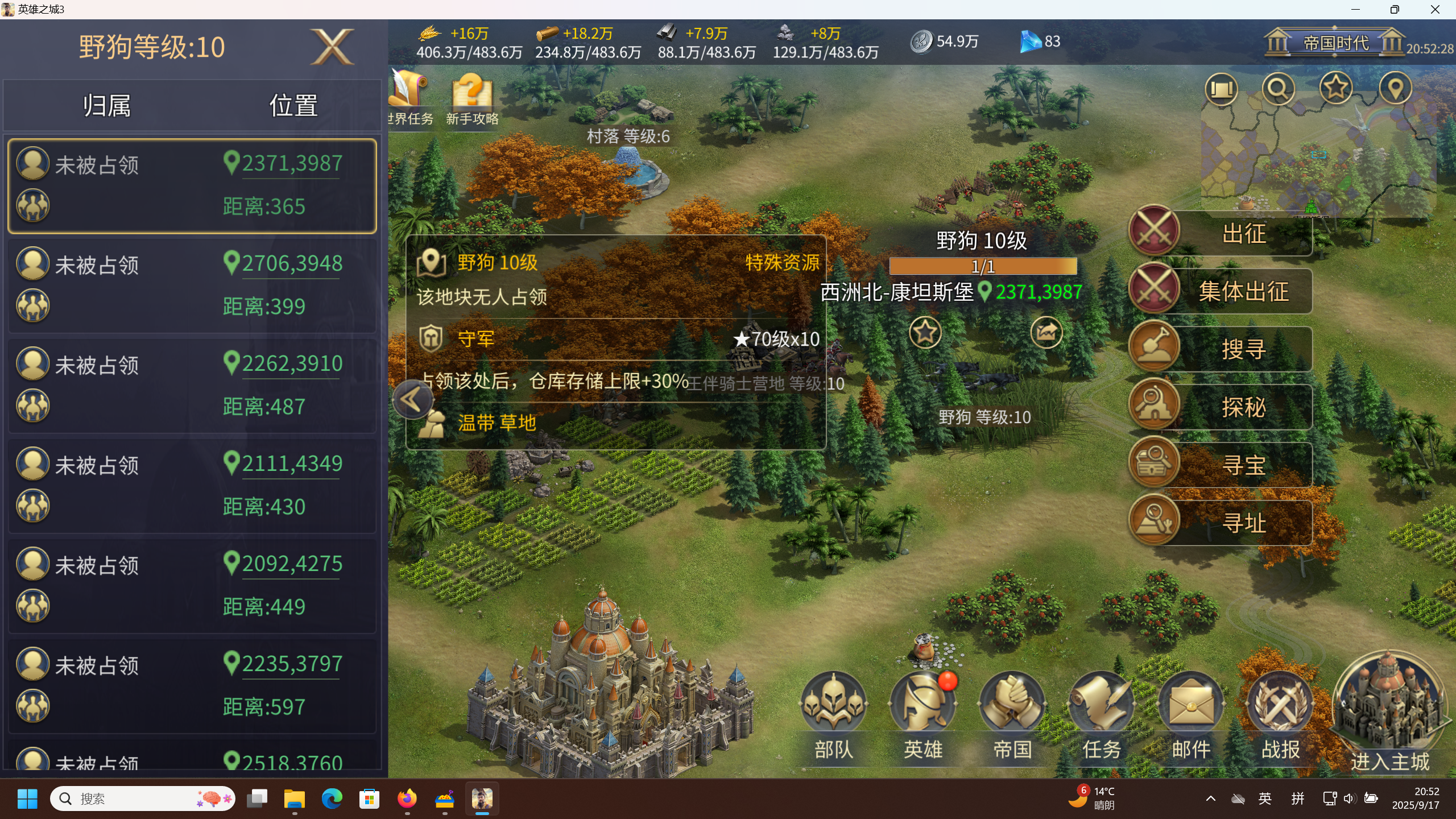 首先占领一块六级资源地(更高级的也可以,不过不建议这么做