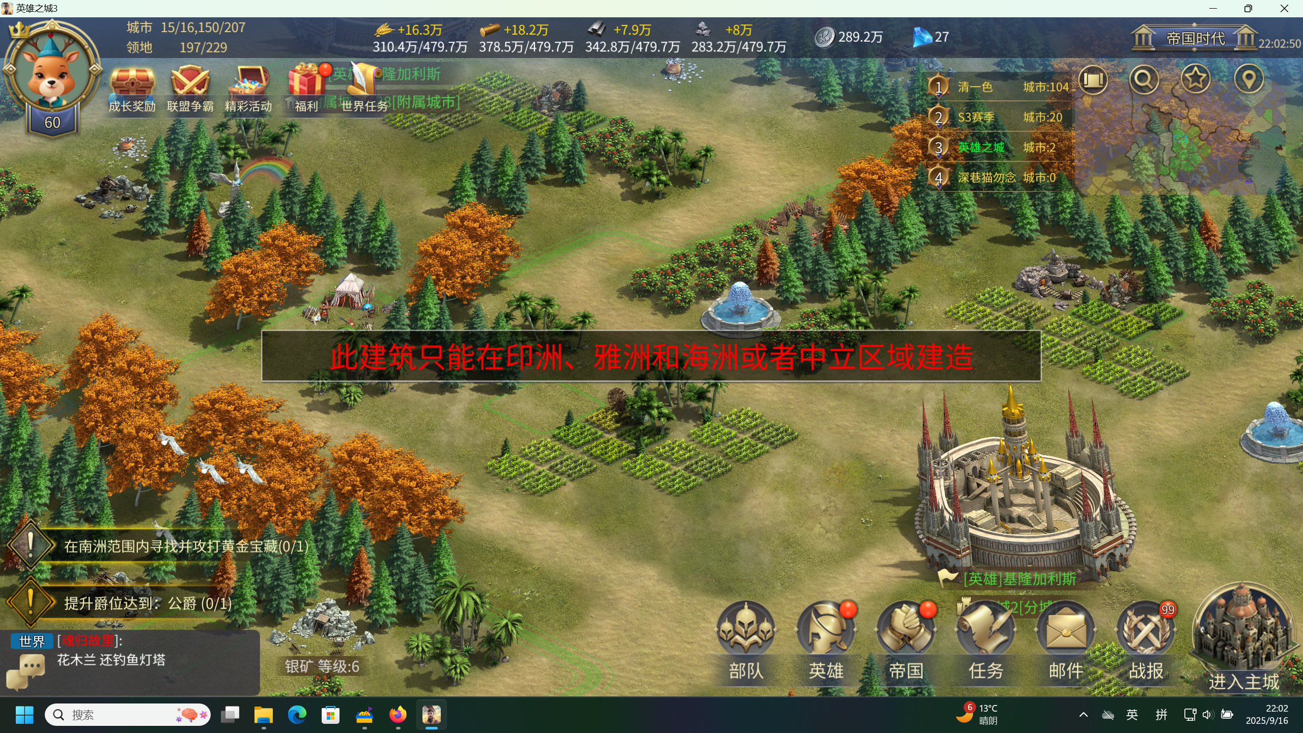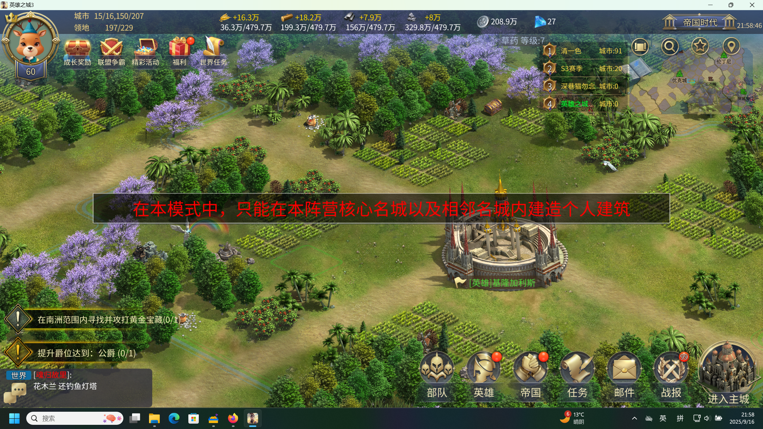 而在游戏当前提供的非征服模式中,又限制了个人建筑只能在核心城;与核心城相邻的中立城建造。