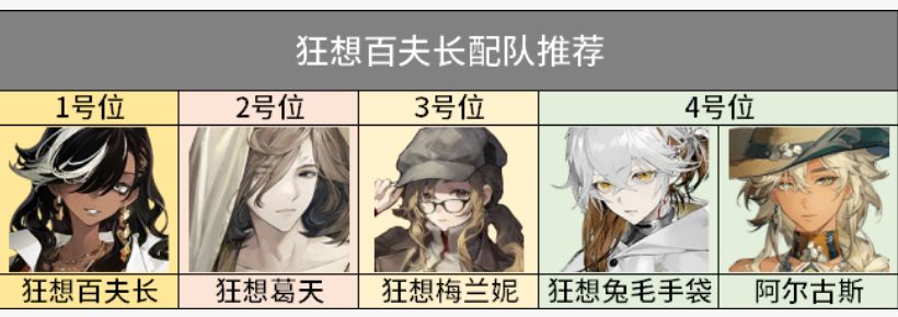 推荐配队:狂想百夫长+狂想葛天+狂想梅兰妮+狂想兔毛手袋/阿尔古斯