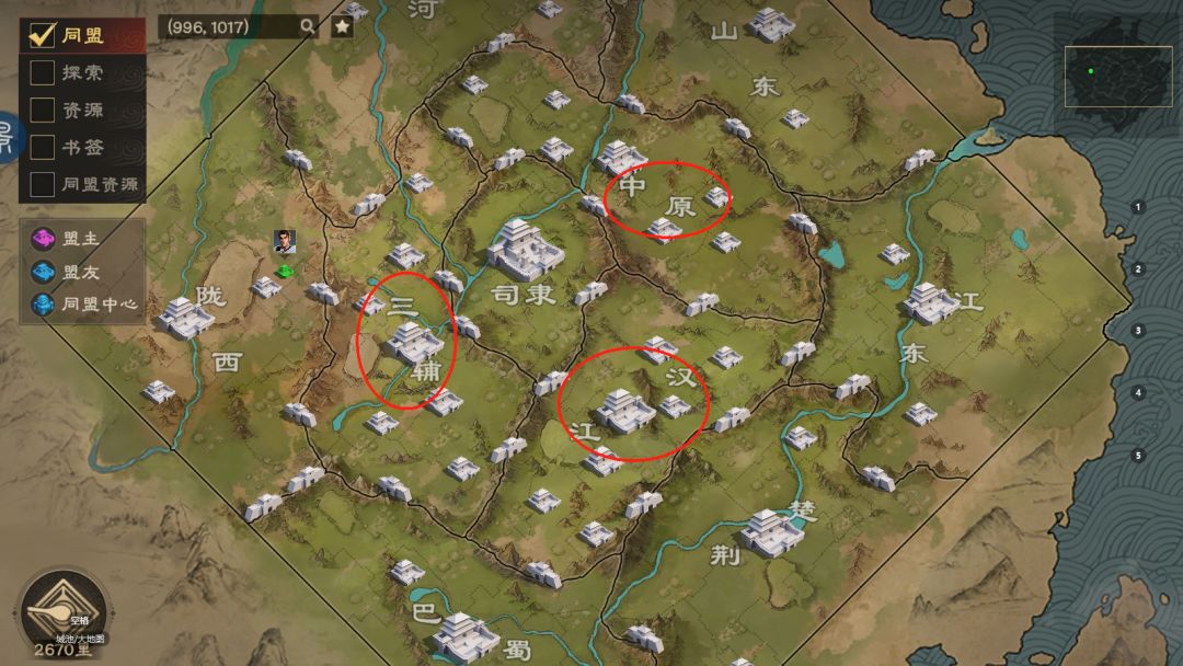 同盟府城也可以作为同盟领地的起点,与中心府城的区别在于府城可以建设在任意州郡(司隶除外)。