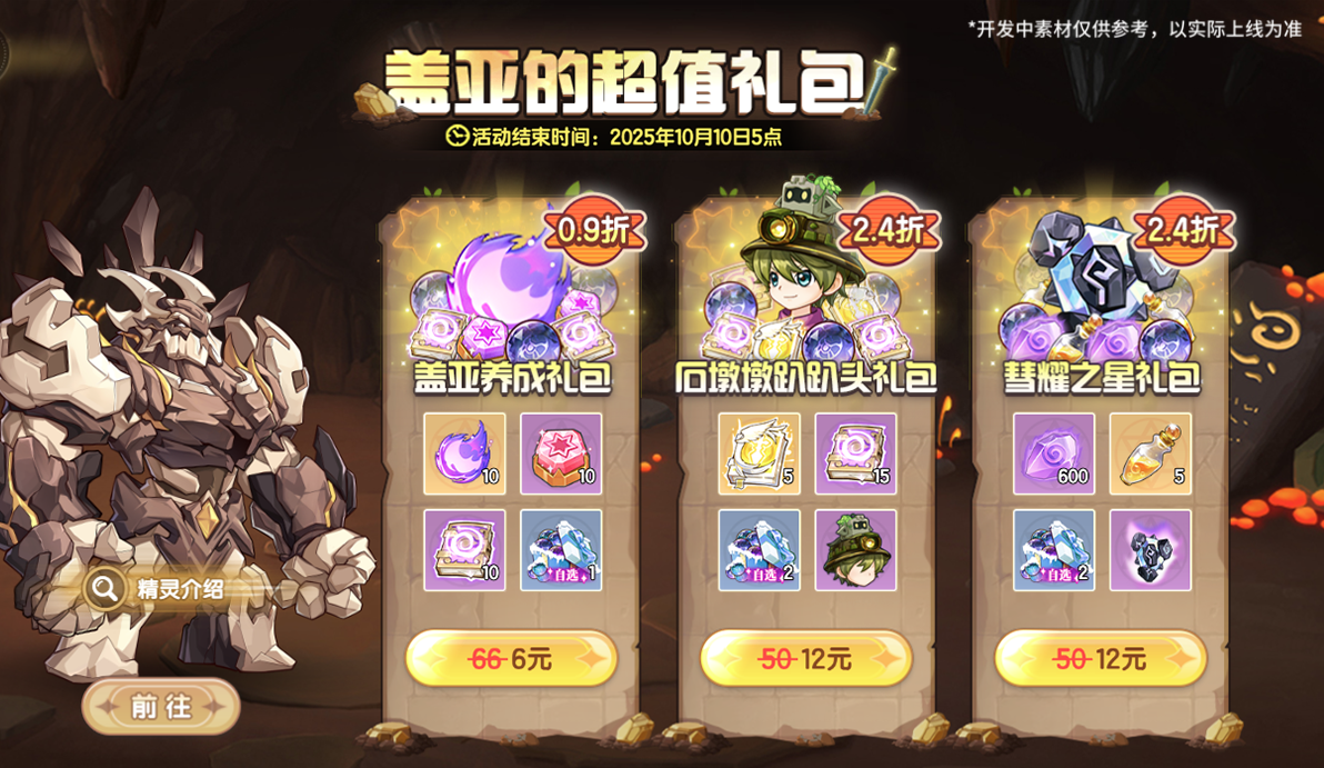 可靠的大地之王盖亚给大家带来了超值的礼包——盖亚养成礼包、石墩墩趴趴头(装扮)礼包以及彗耀之星(装扮)礼包!