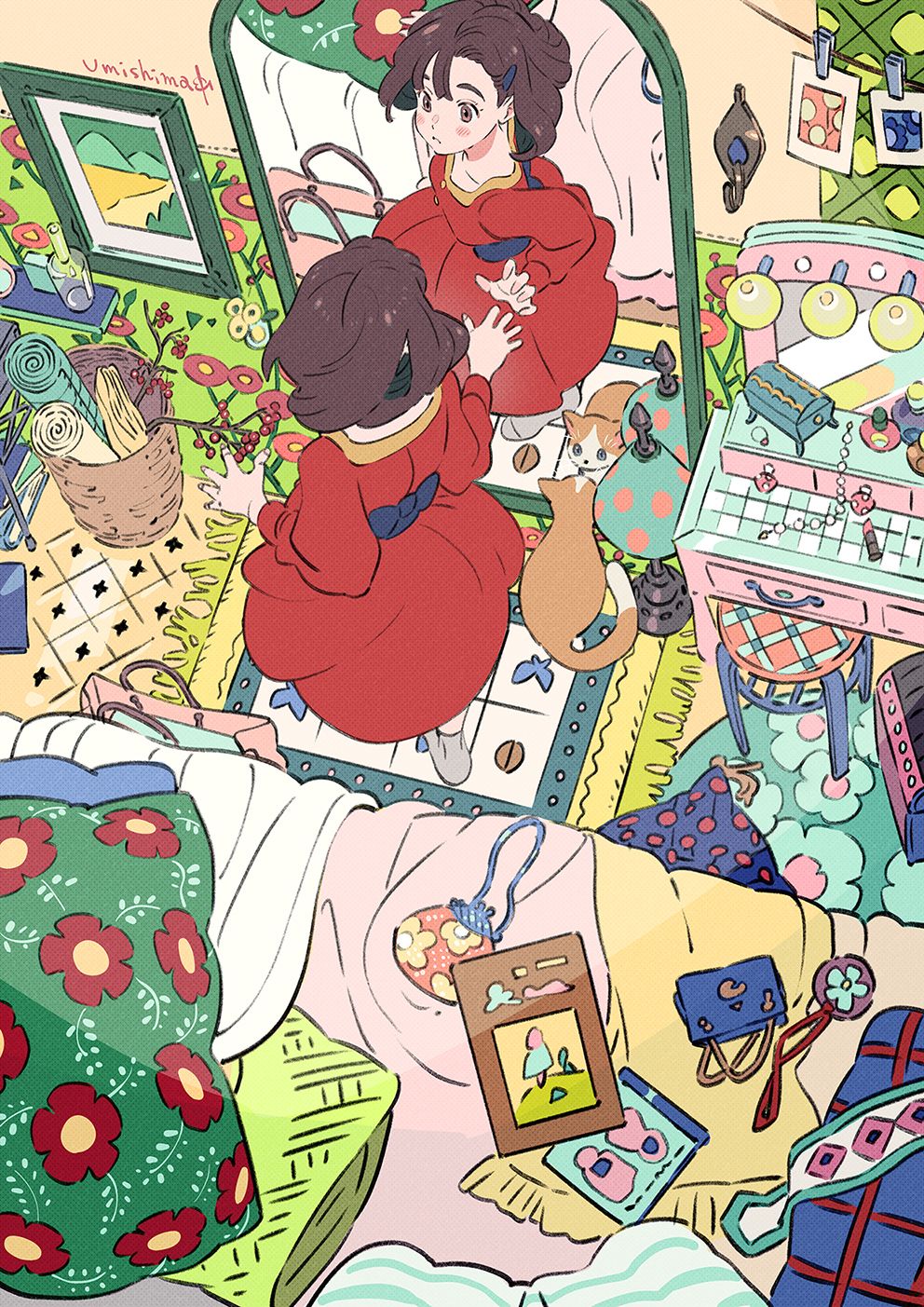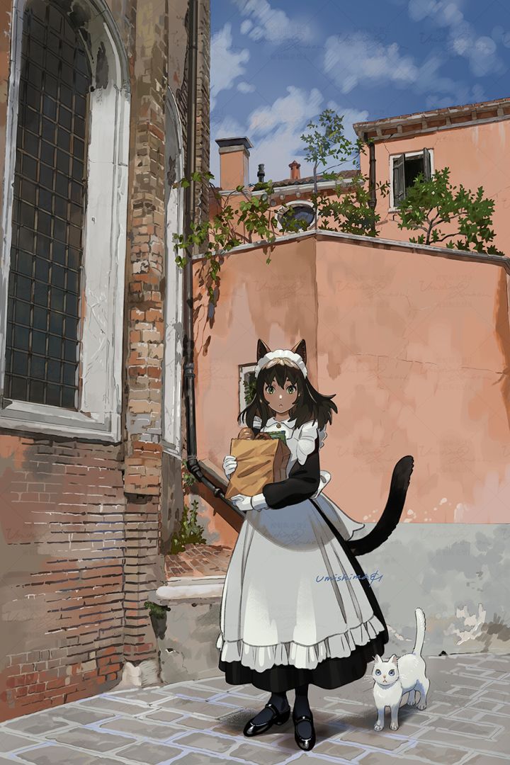 海島千本笔下的场景描绘与人物契合度拉满,画风细腻线条流畅通透,猫咪与少女,充满活力,还有对日常生活的喜爱和情感,可爱捏