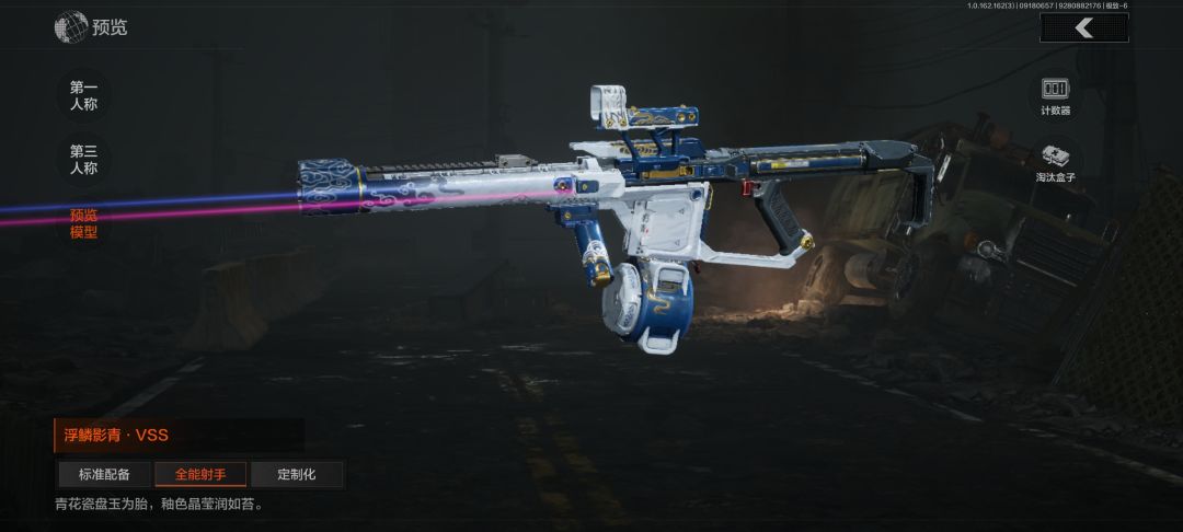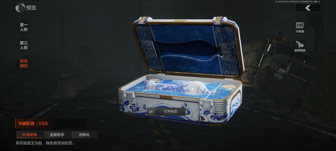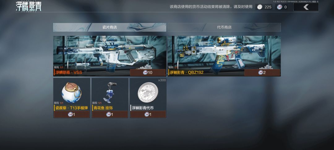 #暗区突围 这个新军需,据说好像是专门派人去青花瓷的发源地,请第三代青花瓷传人设计出来的,可以看到全部墙都是青花瓷的形态,我是特别想要的,我尝试抽了20连抽,什么也没抽出来,就抽出来了几个紫色的枪皮,还有这个摔炮的皮肤,大家都戏称他是魔丸,兑换qbz192需要两个碎片,而兑换vss竞然需要10个碎片,当然贵不是没有原因,他有专属的计数器,每淘汰一个人就增加一,满级以后计数器会显示浮鳞影青,然后用那把枪淘汰人,也是专属的淘汰盒子,把饭盒打开以后,里面装着一个青花瓷瓶子,特别有趣,注意,这次活动应该是送50抽,因为能用装扮券换30抽,做任务也能领20抽。