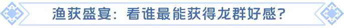 用美味鲜鱼投喂龙群获取好感度,冲排名赢永久称号,还可领取自选卓越龙石、万能卓越信物、特约邀请函等海量奖励!