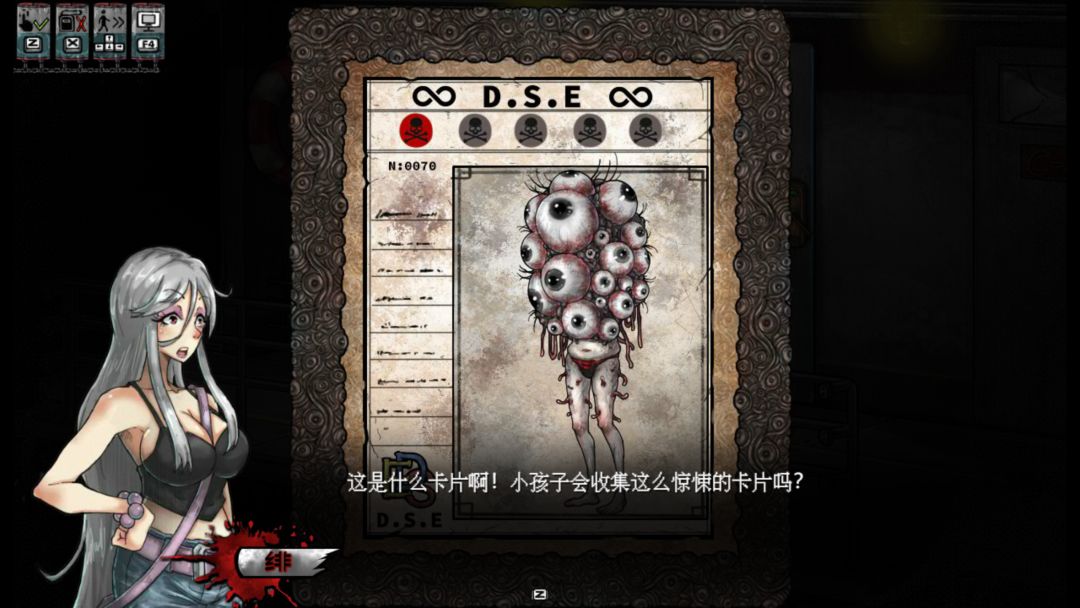 而且还有一个很有趣的收集品就是怪物卡牌,相当于图鉴一般的存在,上面会有对它们的简单介绍,有些名字还挺有趣的,对我这种集卡党来说真的是非常重要的游戏机制。当然对应这些怪物图鉴还有猎奇的女主死亡CG,女主死在特定的怪物手中会有完全不同的死亡CG,漫画式分镜很有感觉。