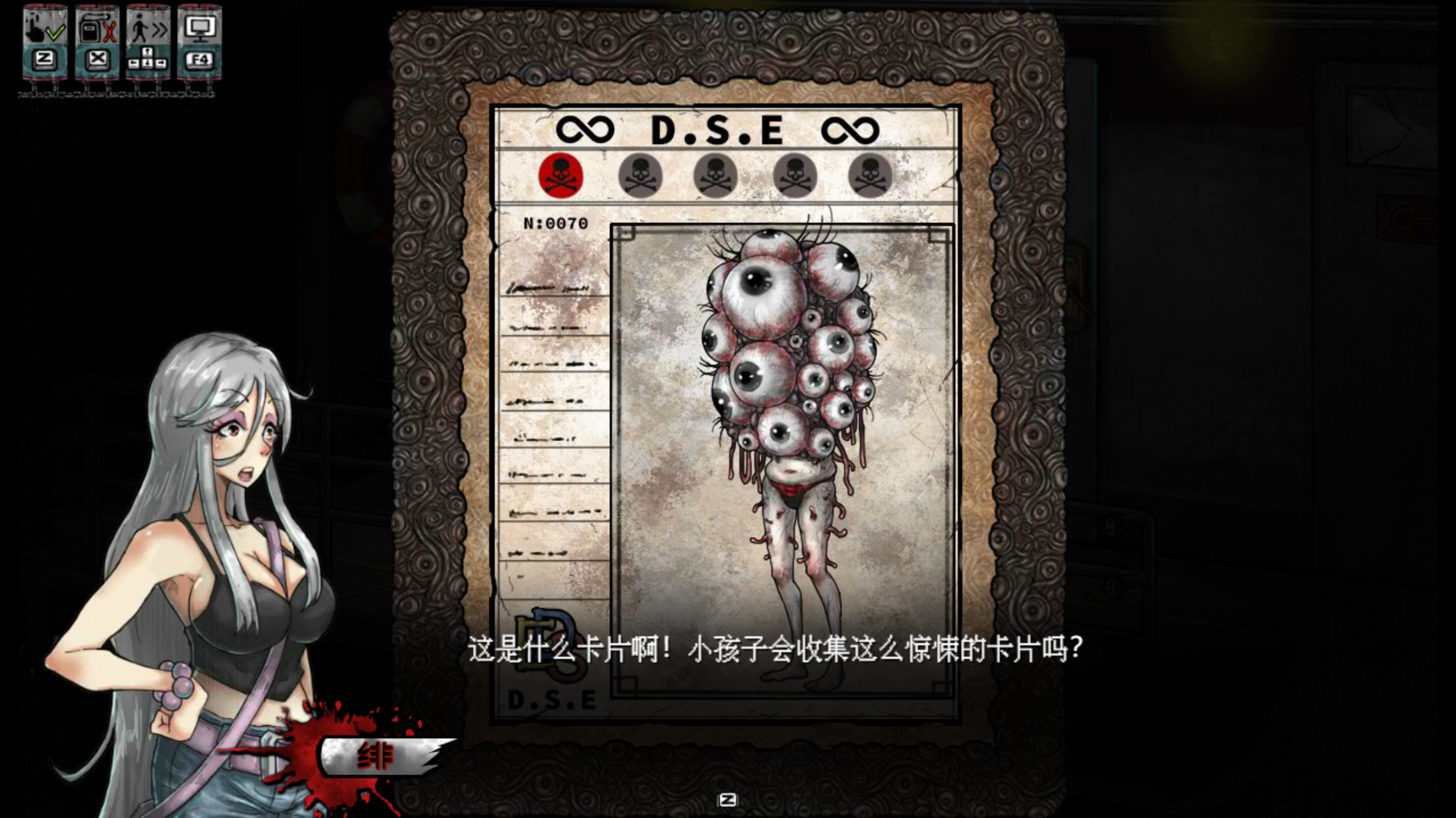 游戏本身并不恐怖,但是猎奇的画风可能不太适合大众玩家。血肉扭曲的风格有点类似克苏鲁神话的感觉,不过本作的卡片收集系统上的怪物介绍个人感觉更偏向SCP那种奇怪的收容物介绍,特别是商人不会攻击人很友好的说明。其实游戏的重要主线会有动画转场的,那里面的画风就很正常,所以游戏的主体风格应该还是为了游戏基调而创作的。