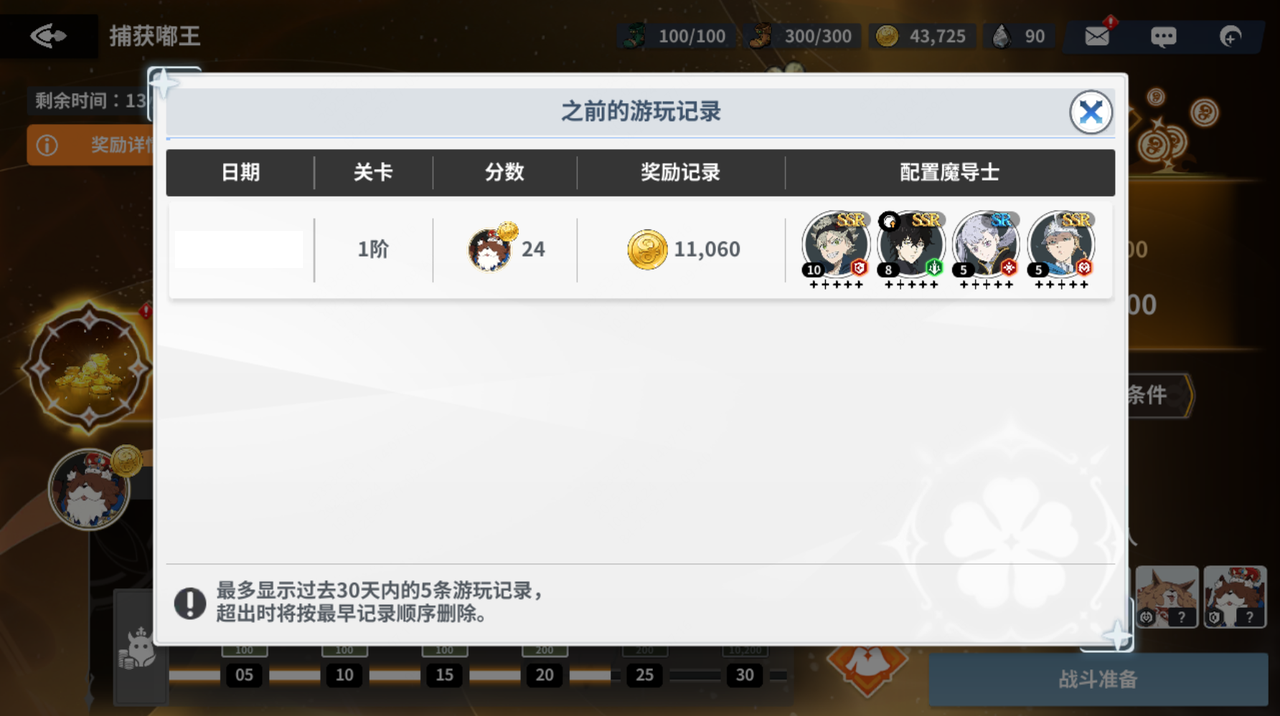 可以在这里查看最近的5条挑战记录,可以参考这些记录,试着再去配置能获得更高分数的队伍!