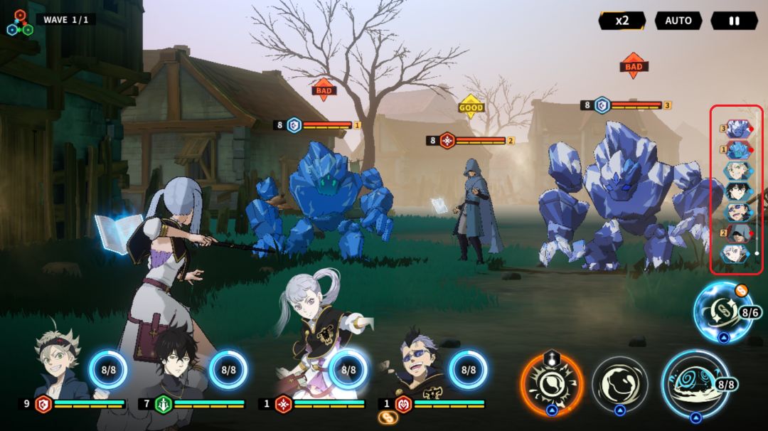战斗会以「行动顺序」进行,右侧就是可以查看回合顺序的「行动条」。