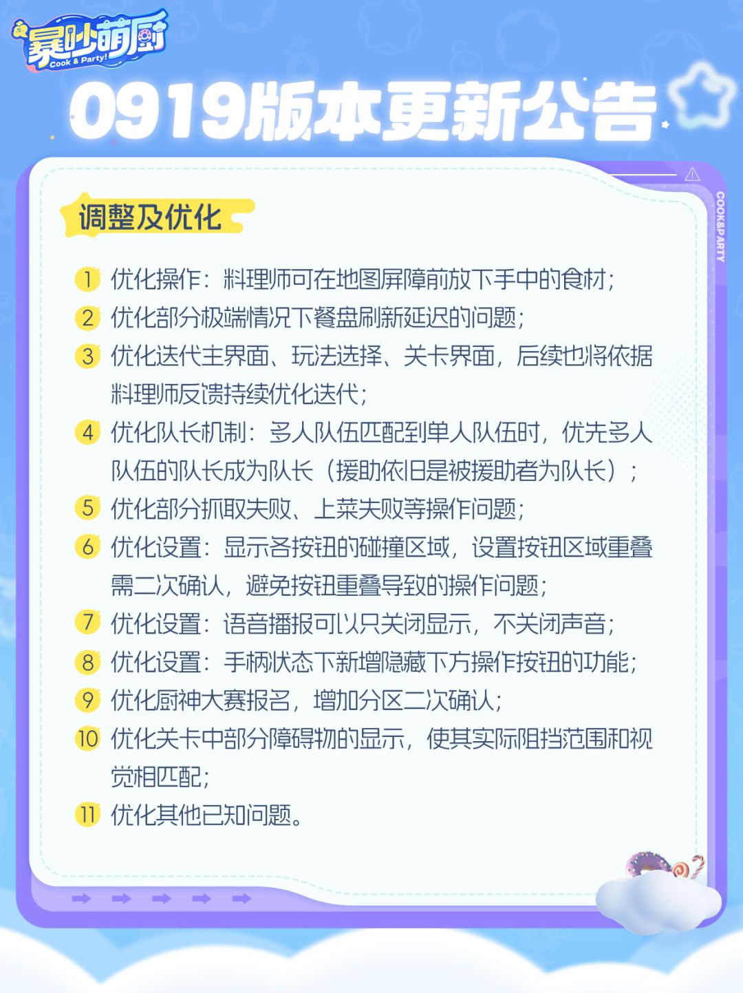 为给大家带来更好的游戏体验,《暴吵萌厨》将于【2025年9月19日5:30-7:30】进行停服更新,此次更新预计停服2小时,届时您将暂时无法登录游戏,如在维护期间无法完成维护内容,开服时间将顺延。