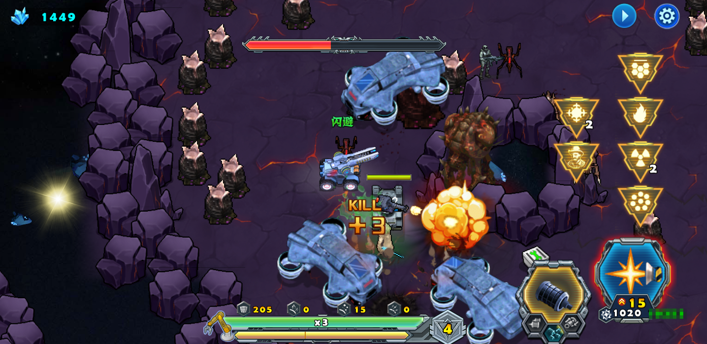 第二关是主队进攻型关卡,充满了未知与挑战。在前进过程中,我们会遇到金色的虫卵,打破虫卵后,机枪护卫将加入我们的阵营,成为我们消灭敌人的强大助力。然而,前进的道路并非一帆风顺,紫色的毒雾会不时出现,这是我们必须小心应对的危险区域。一旦陷入毒雾,我们的队伍将受到持续伤害,因此要尽量避开。