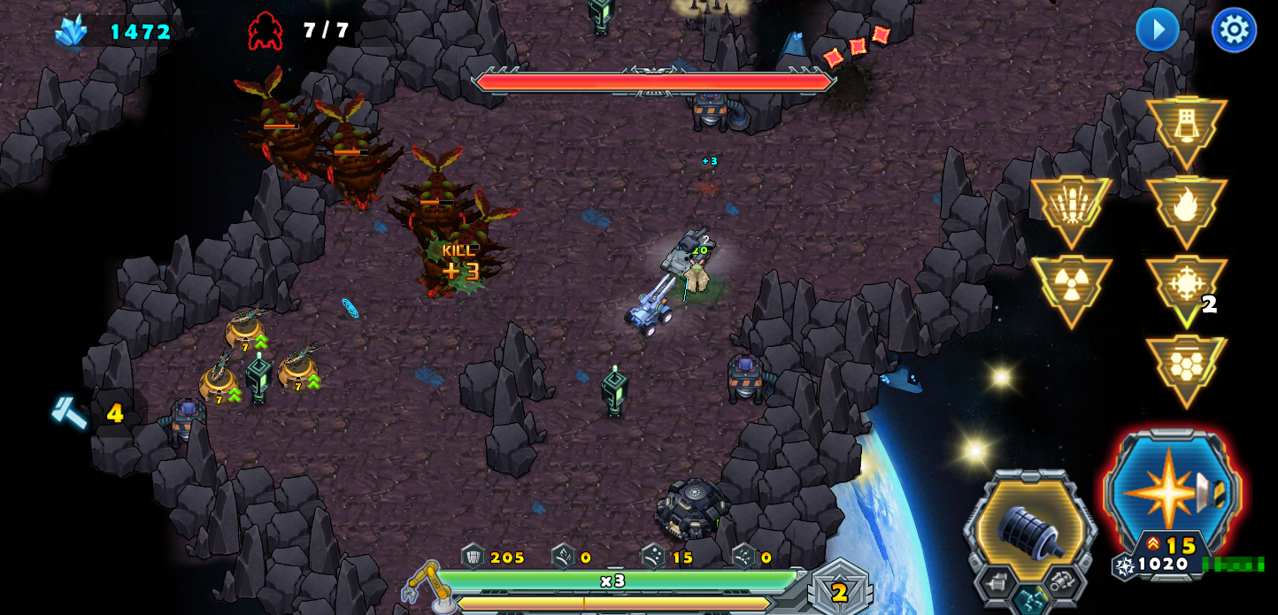 在防御策略上,要在基地周围全面建造冲击波枪塔,形成一道密集的火力网,让机械飞船难以靠近空投区域。然而,由于敌人数量众多,难免会有漏网之鱼。这时,就需要我们驾驶车辆灵活机动,及时消灭靠近基地的小怪,确保基地的安全。
