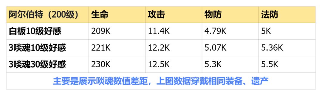 但是!阿尔伯特的奶量与自身数值相关,生命值、攻击越高,奶量就越高。活动送1个,如果再抽3个,可以用更低的成本啖魂3。啖魂主要是提升数值、好感等级上限,能够进一步抬高战力数值(战力不足,越战难度很高,其他渠道提升战力的空间有限)。