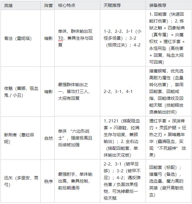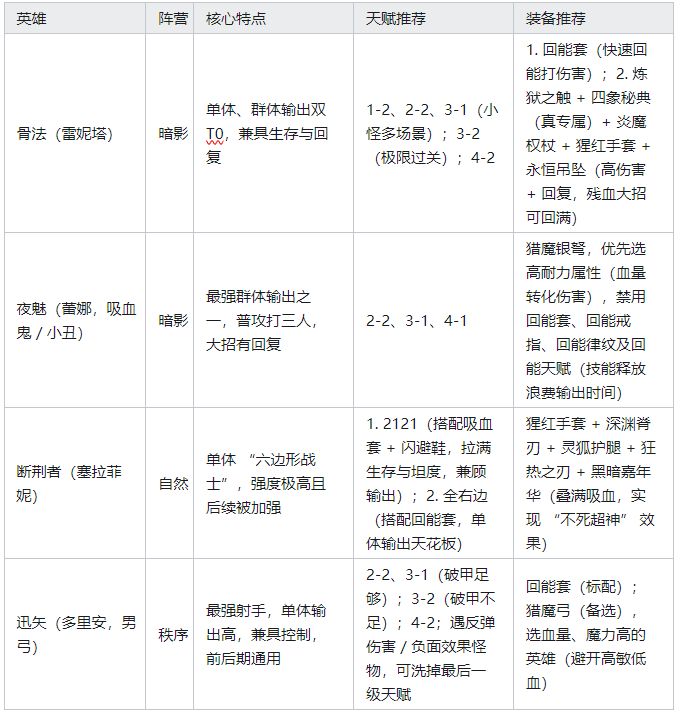 地下城堡4全阵营强度榜:从T0-T3强度与适用场景,精准养卡不踩坑