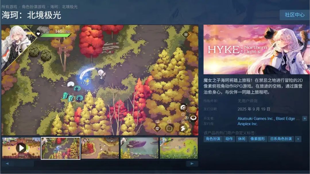 第一次注意到《海珂:北境极光》,其实是在 Steam 的“即将推出”列表里。俯视⻆动作、复古像素 JRPG、美少女、露营……这几个关键词凑在一起,很难不让人多看两眼。