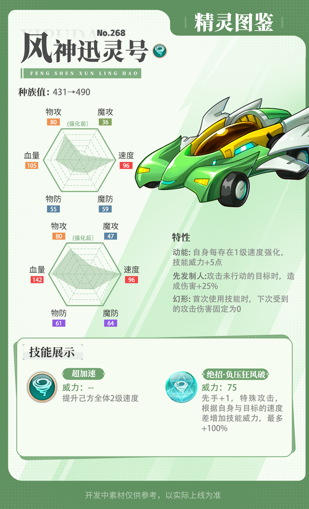 *注:展示数据取自精灵最高阶形态,数据源于测试服,具体数据以游戏实际线上版本为准